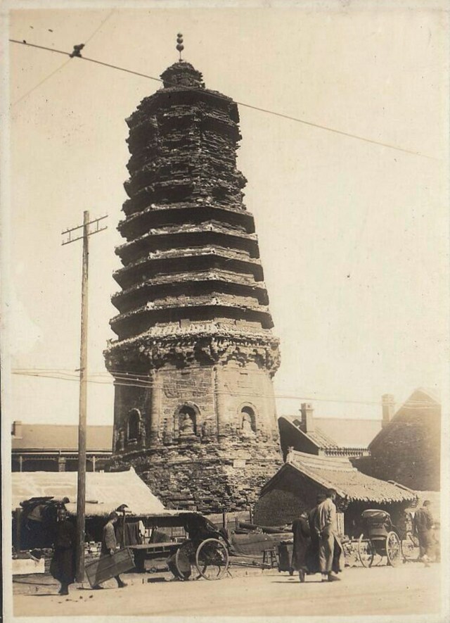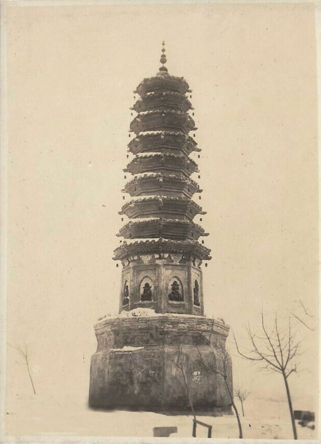 名称: 辽宁铁岭古塔 类别: 银盐照片 日期: 1920-1930年代 尺寸: 10 x 15厘米 备注:古塔名称待定