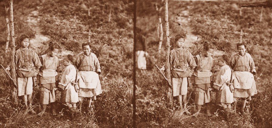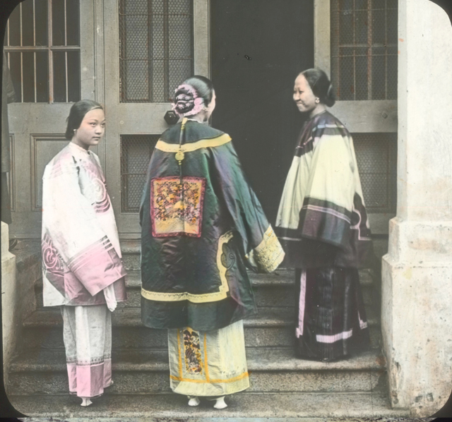 名称: 在广州的满清官员家属 类别: 玻璃底片(手工上色) 日期: 1900年 尺寸: 11 x 9厘米