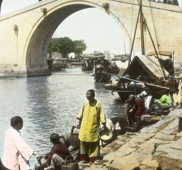 名称: 在苏州河边洗衣的妇人们 类别: 玻璃底片(手工上色) 日期: 1900年 尺寸: 11 x 9厘米