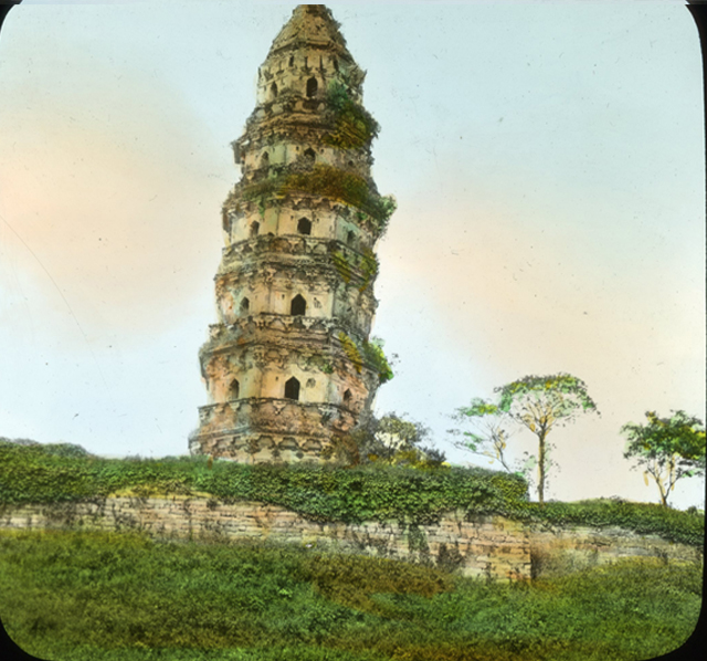 名称: 苏州虎丘塔 类别: 玻璃底片(手工上色) 日期: 1900年 尺寸: 11 x 9厘米
