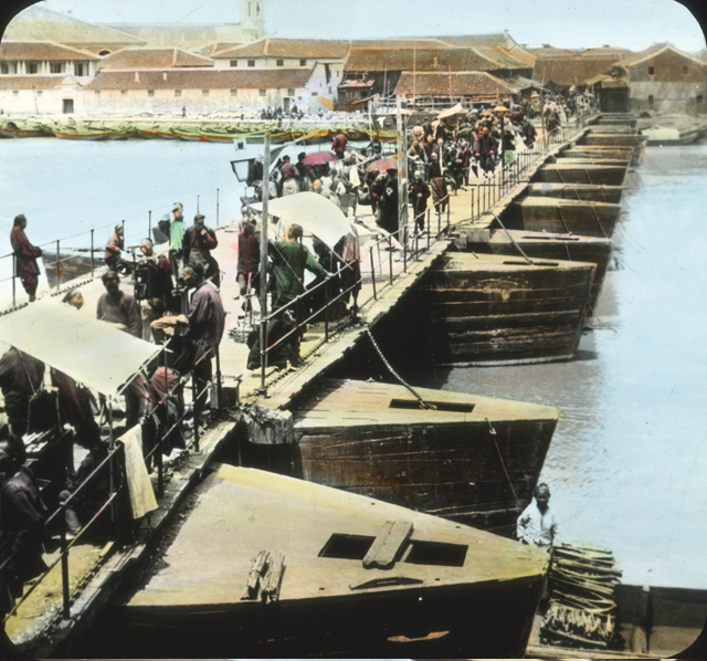 名称: 汉口码头 类别: 玻璃底片(手工上色) 日期: 1900年 尺寸: 11 x 9厘米