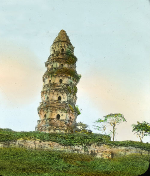 名称: Tiger Hill Pagoda, Suzhou/苏州虎丘塔 类别: Glass Slides/玻璃底片(手工上色) 日期: 1900s 尺寸: 9x11cm
